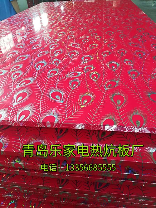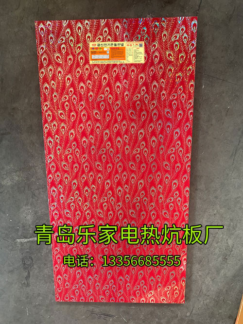 羽毛镭射面电热炕板:外表制作采用镭射技术,外表耐酸碱,防腐蚀,防过热,防漏电,不产生静电
